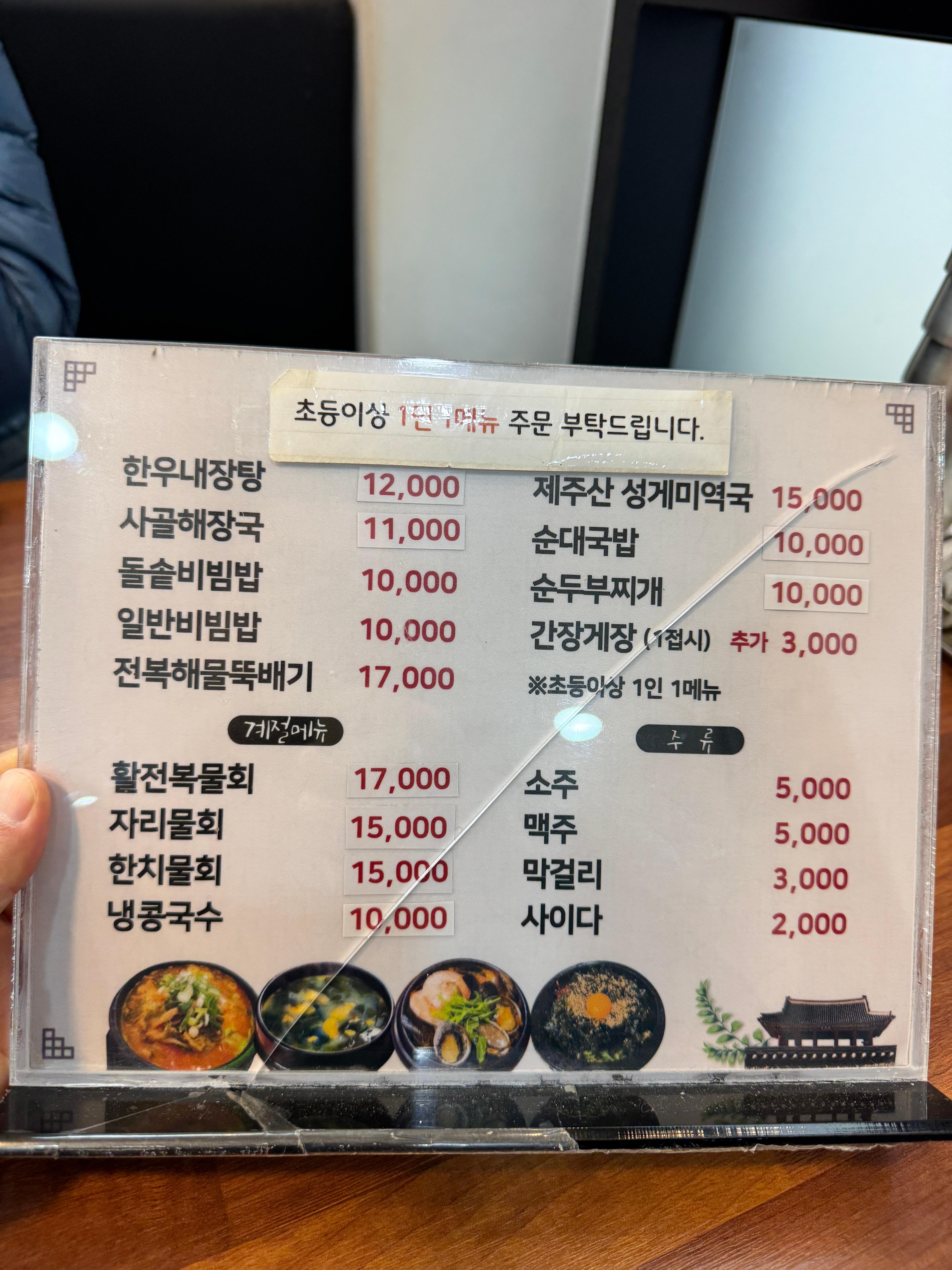 - 제주산 성게미역국: 15,000원