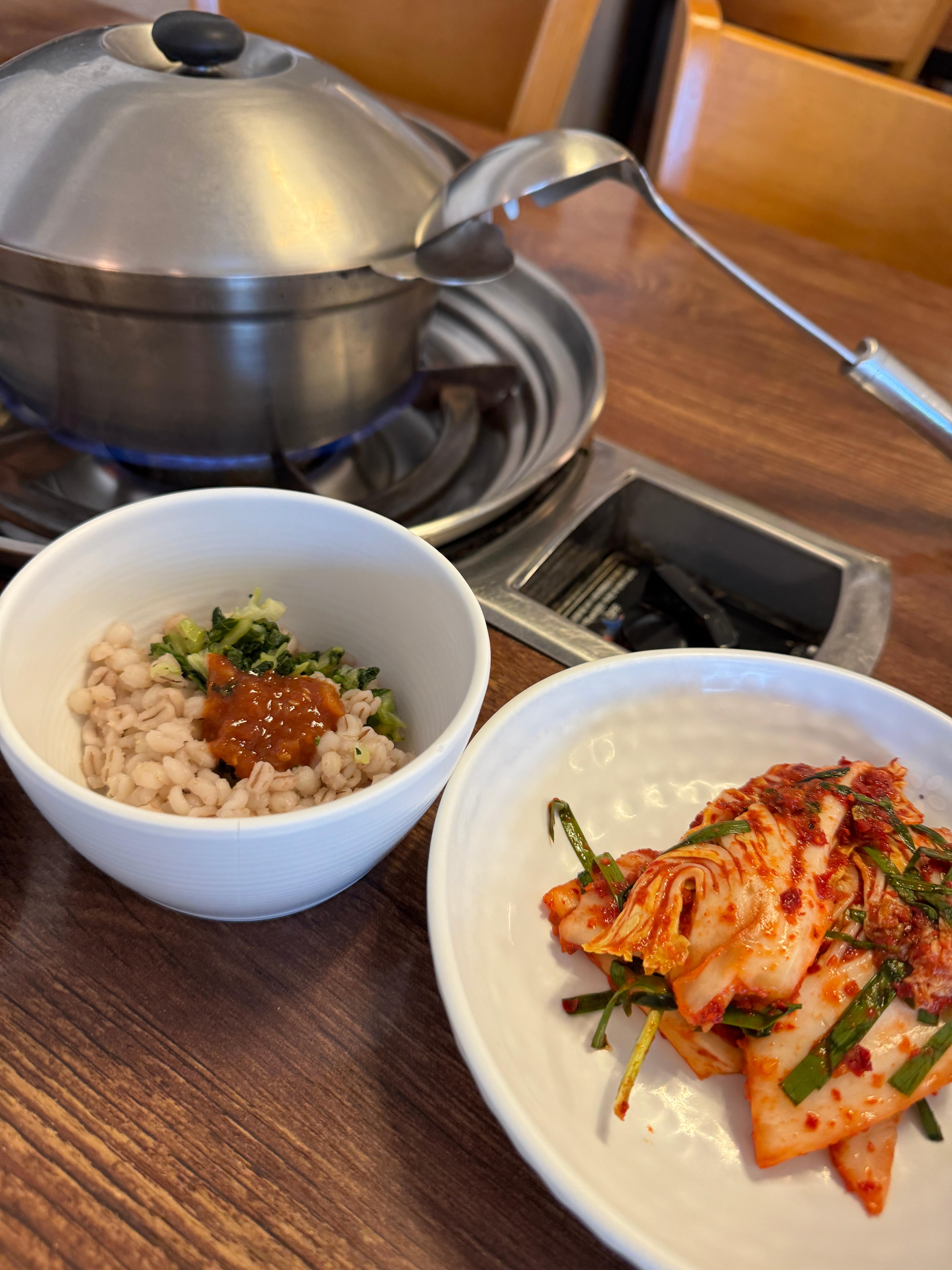 - 곁들여 나오는 보리밥, 겉절이 김치 등이 있고 김치 맛이 좋다는 평이 많음.