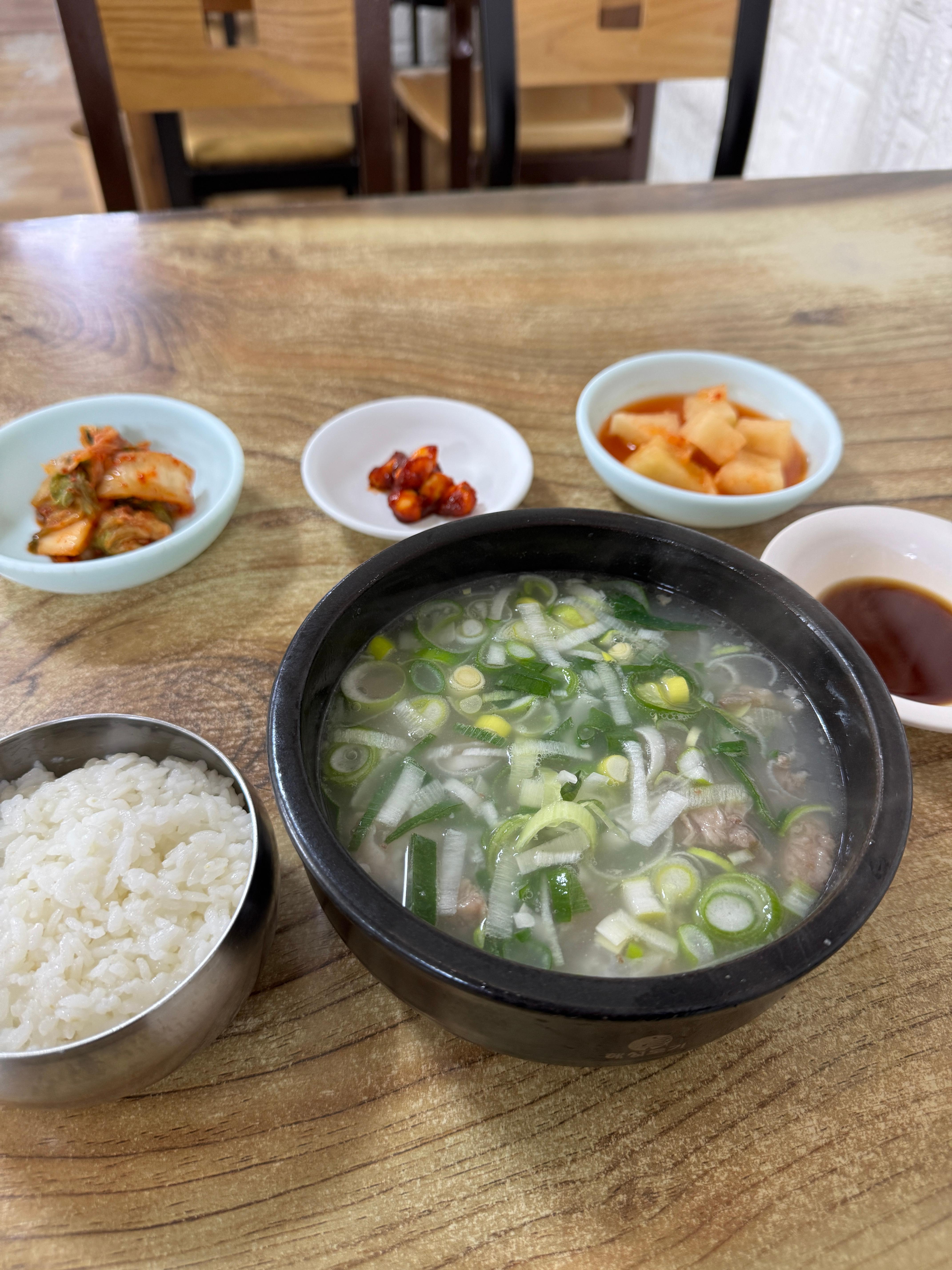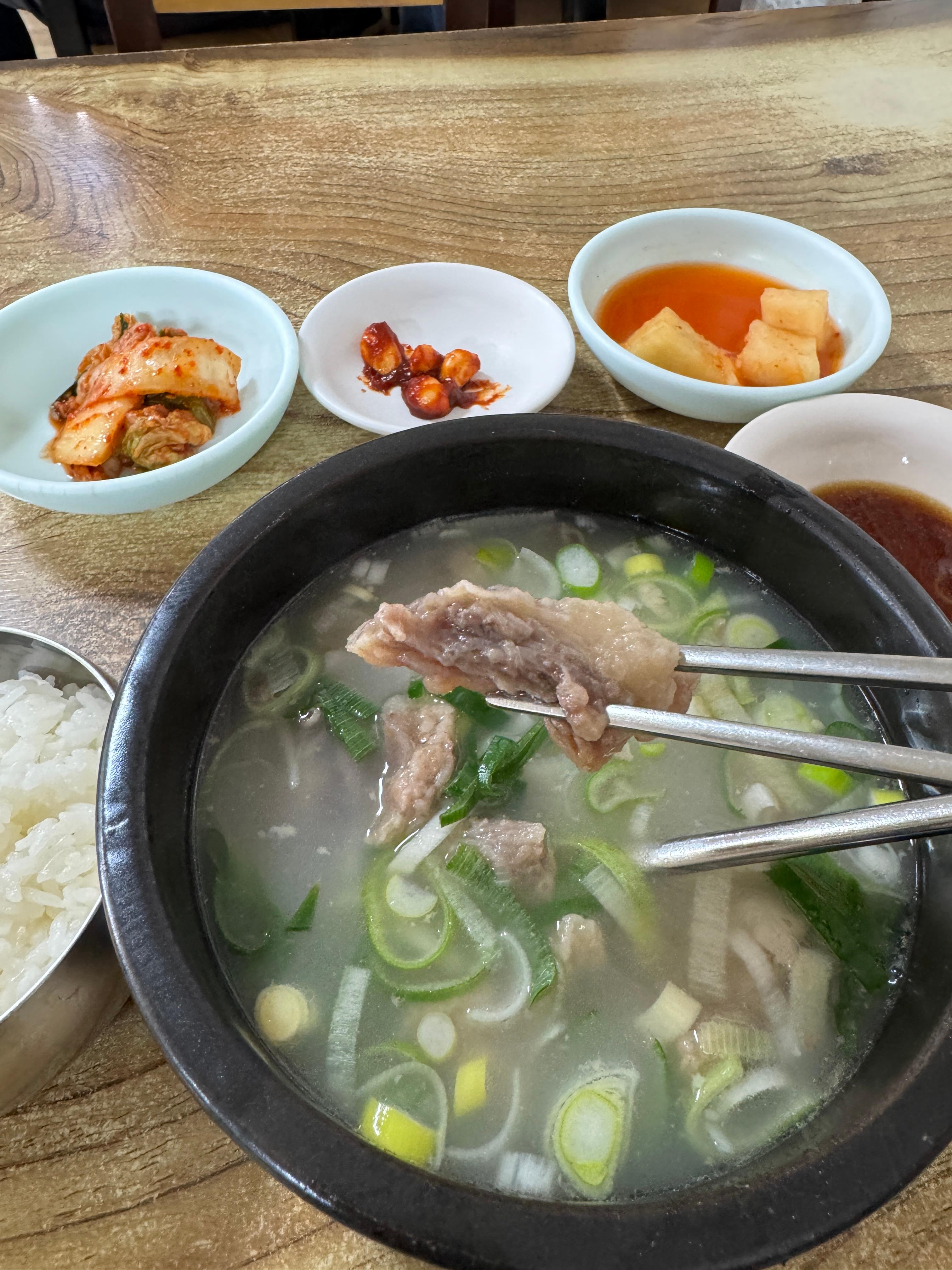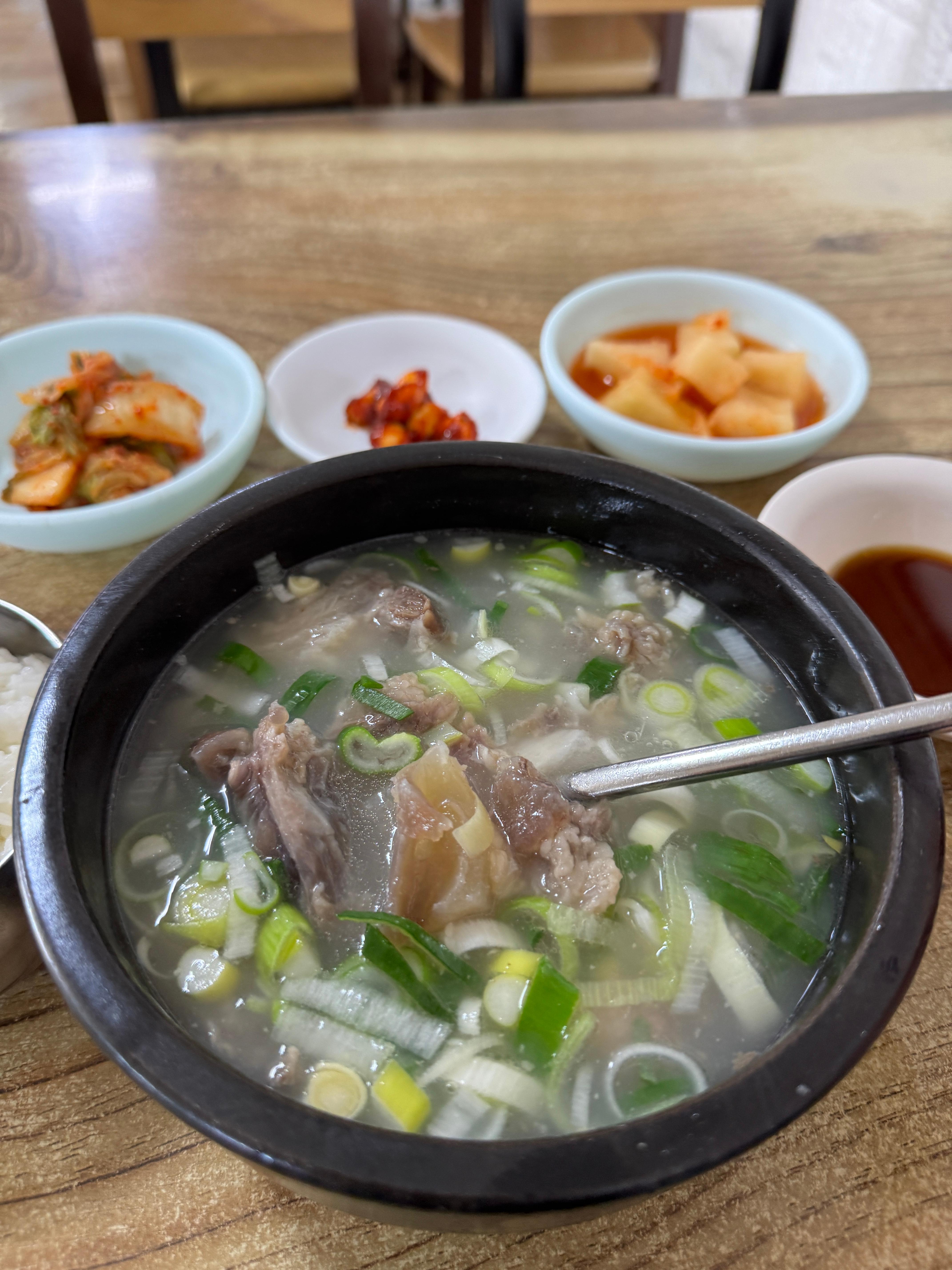 - 기본 반찬 구성은 간단함 (깍두기, 마늘무침, 겉절이 등)인데 도가니탕이나 수육 같은 주요 메뉴가 잘 받쳐줌.