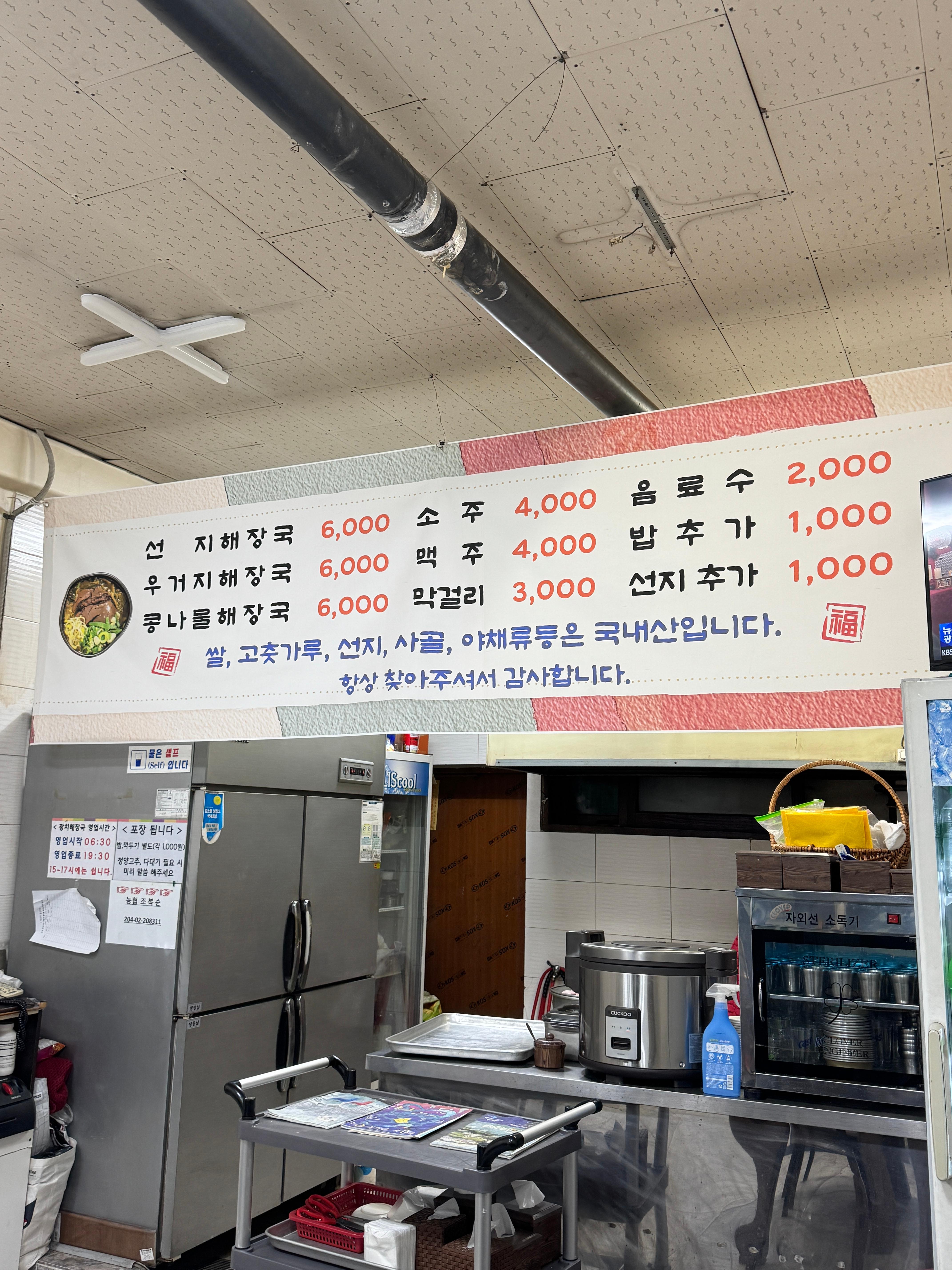- 메뉴 단순 & 주력에 충실: 메뉴가 선지, 우거지, 콩나물 해장국 이렇게 세 종류 중심이라 흔들림 없이 품질 유지됨.