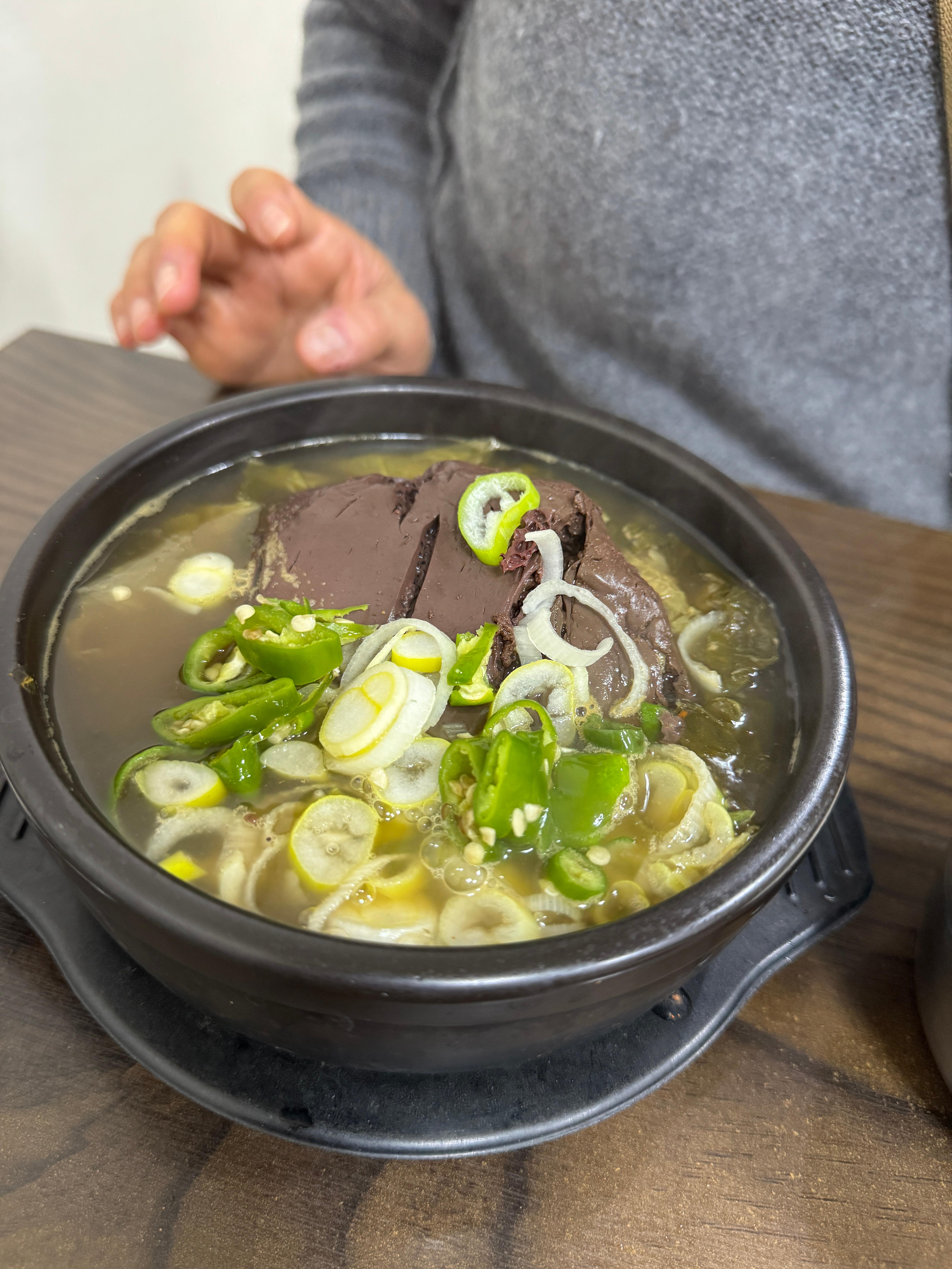- 국물 / 재료 맛: 국물은 진하거나 과하지 않게 깔끔하고 시원한 맛이라는 평. 선지나 우거지, 시래기 등이 실하게 들어감.