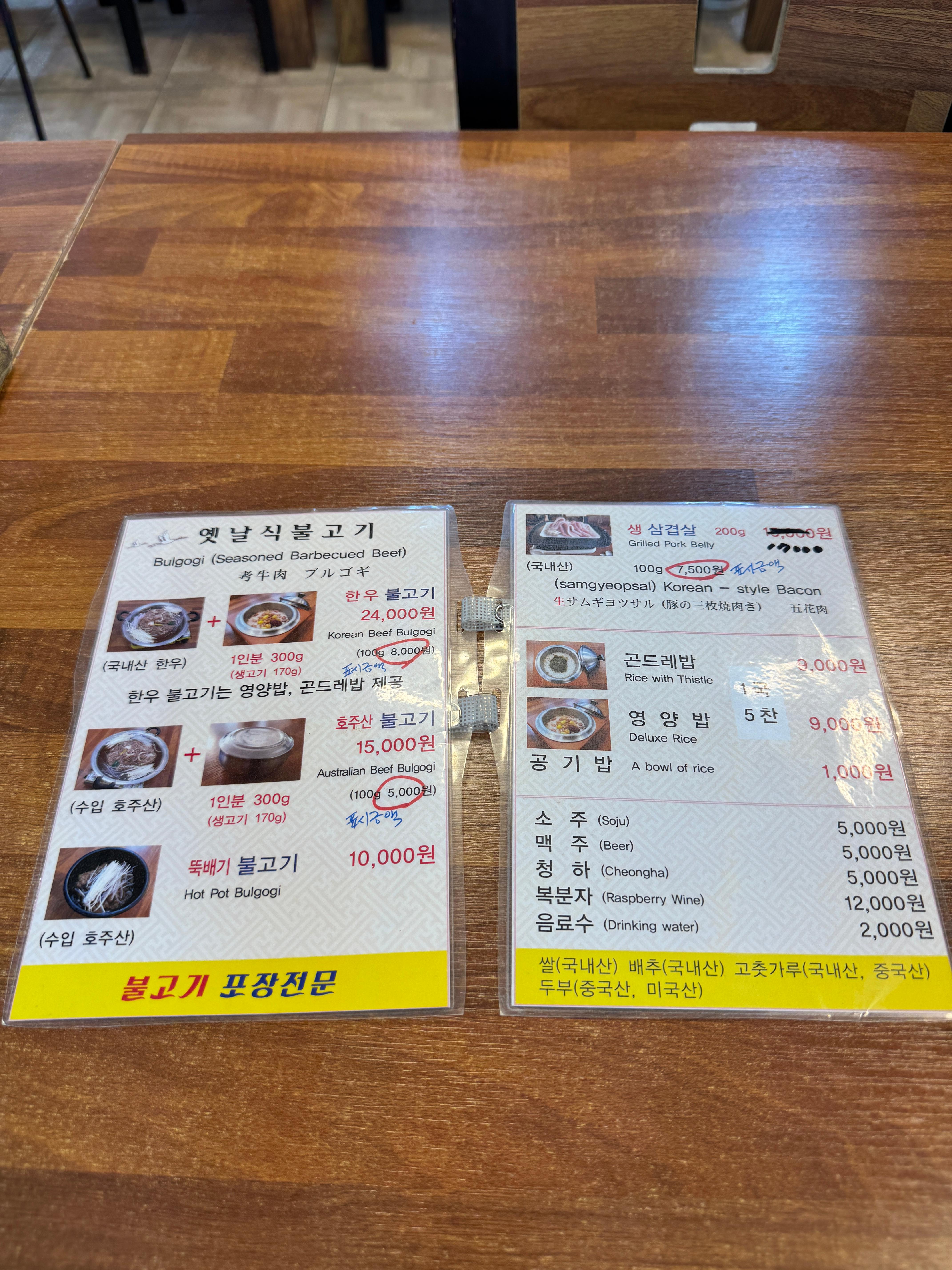 | 호주산 불고기 / 호주 소불고기 전골 | 약 ₩11,000 ~ ₩15,000 정도 |