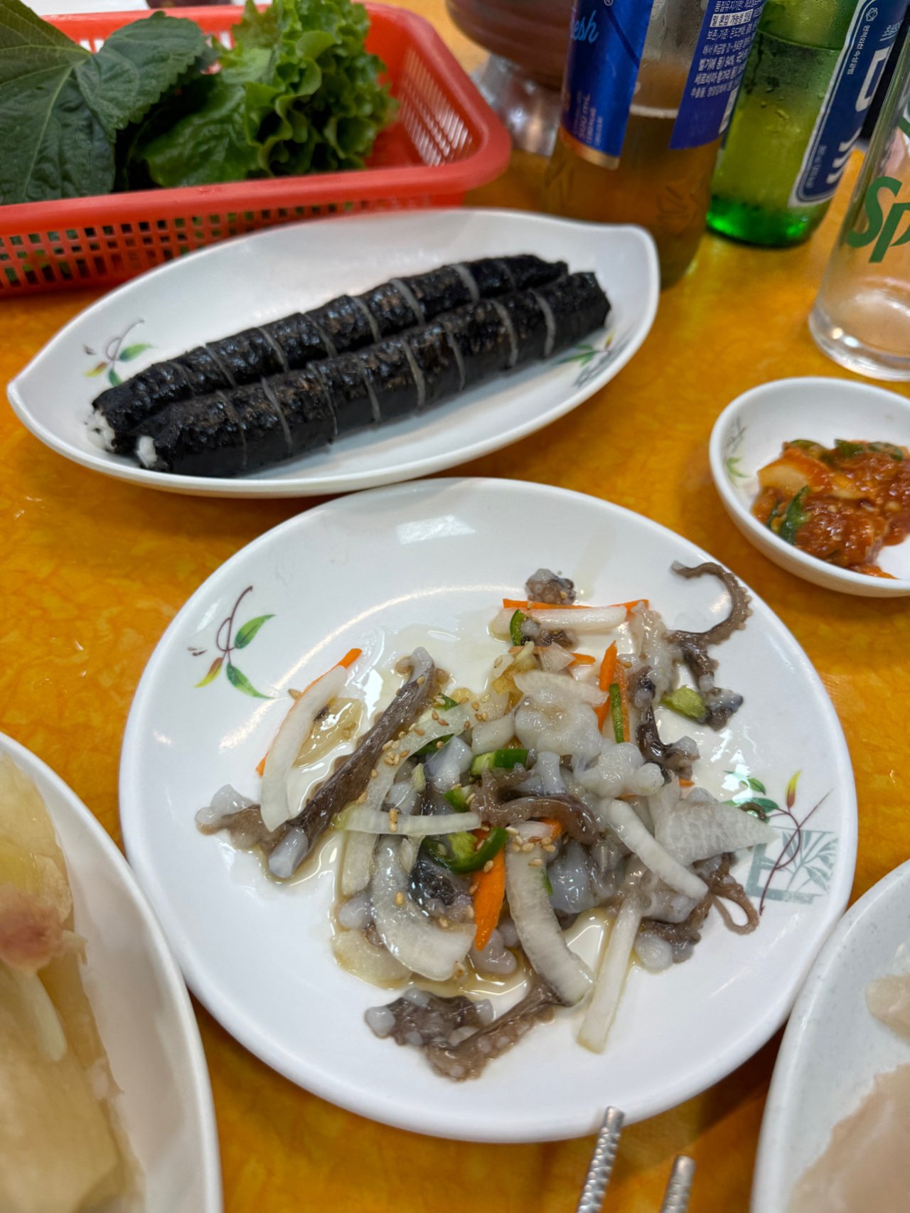 | 기본 서비스 / 안주 | 김밥, 낙지, 해삼, 성게, 개불 등 서비스 혹은 곁들임 안주 형태로 나오는 경우 있음 |