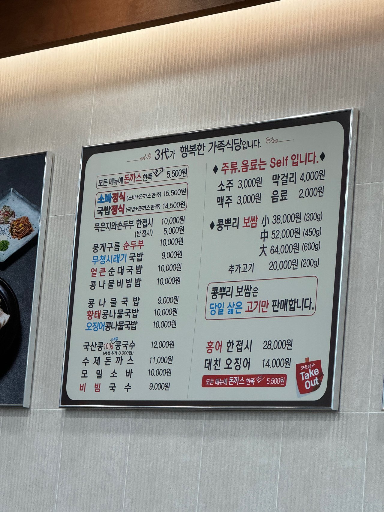 - 브랜드: 전주콩뿌리 프랜차이즈 매장 중 하나로, ‘콩나물국밥 + 보쌈’ 조합을 주력으로 하고 있음.